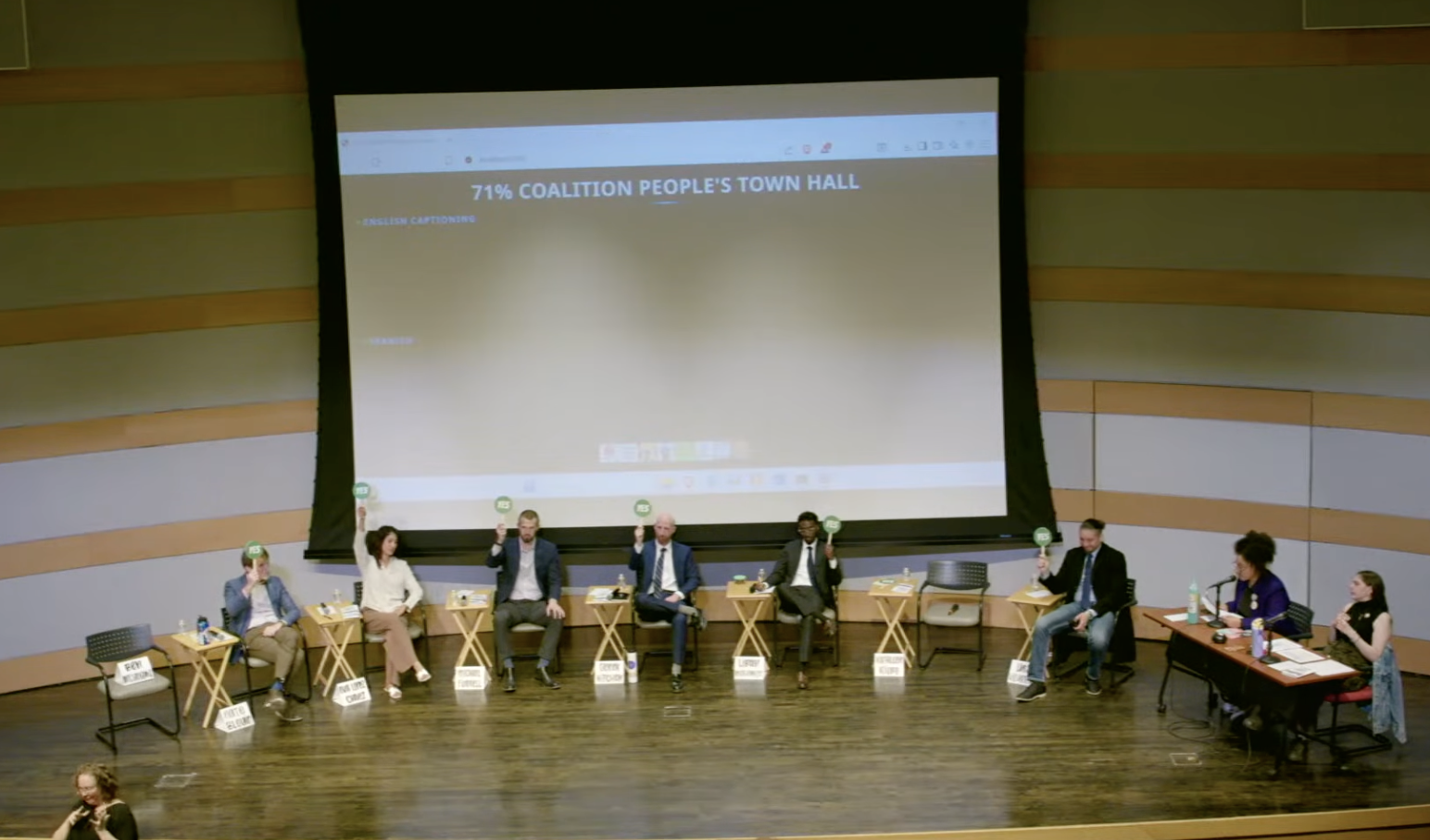 The town hall was cosponsored by nine other organizations: Black Lives Matter (Utah chapter), Green Wave Utah, Salt Lake Artists Against Genocide, the Salt Lake Community Bail Fund, Healthcare Workers for Palestine, Local CWA 7765, the Church of Protest, Salt Lake Bakers for Palestine, and Utah Jews for Palestine.
